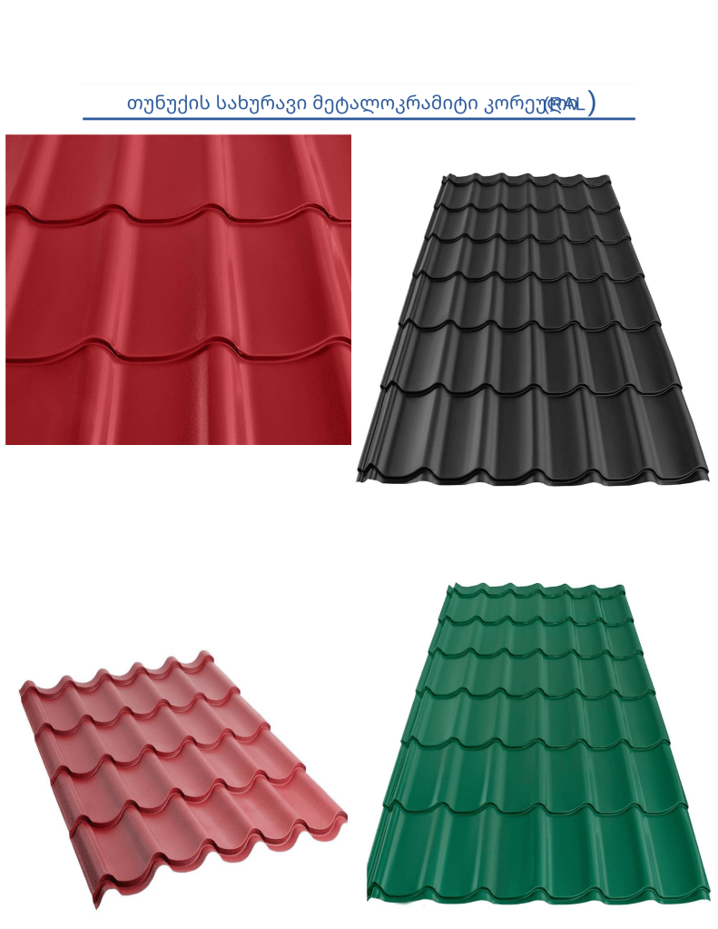 - მარტივი მონტაჟი – პროფილირებული ფურცლები ადვილად იჭერება და ქმნის მყარ, საიმედო სახურავს.
